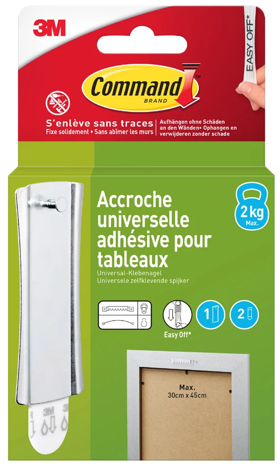 • fixer sans endommager : les languettes de fixation Command™se retirent proprement et rapidement sans laisser de traces sur les murs, et sans endommager les surfaces taille M : capacité de charge: 5,4 kg / paquet
