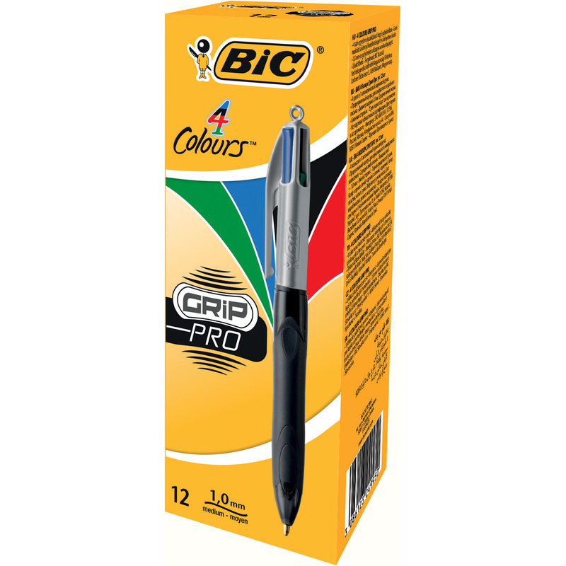BIC Stylo à bille rétractable 4 Colours Grip Pro
