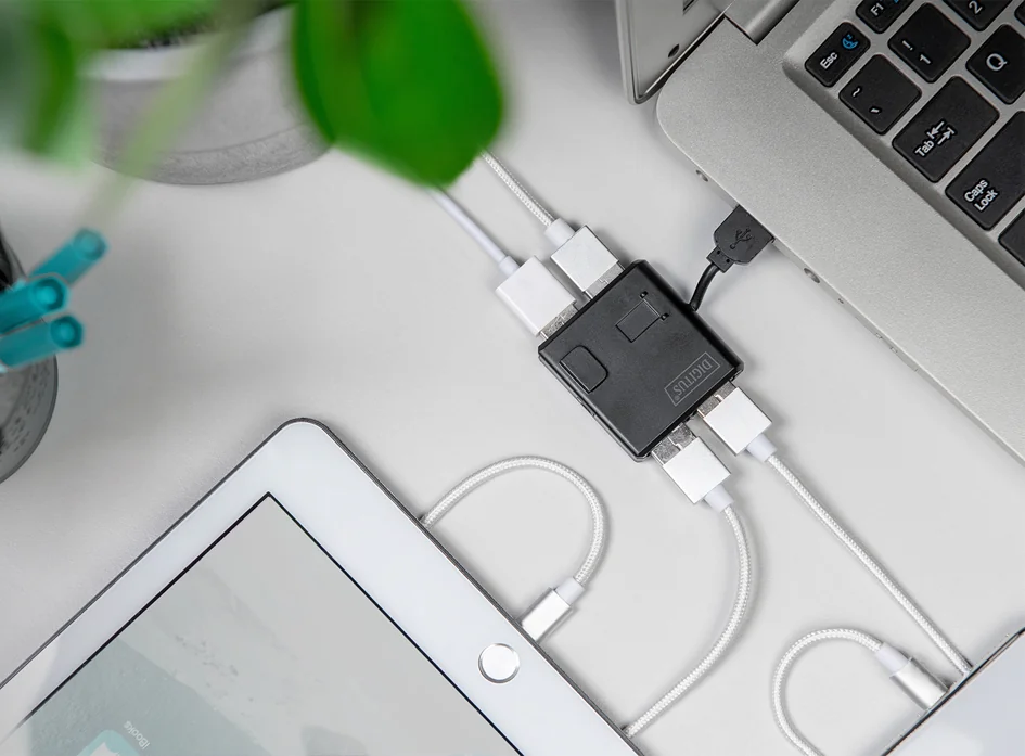 DIGITUS Hub USB 2.0, 4 ports, longueur câble : 300 mm, noir
