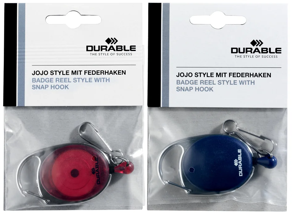 DURABLE Porte-badge avec enrouleur, oval, rouge/transparent