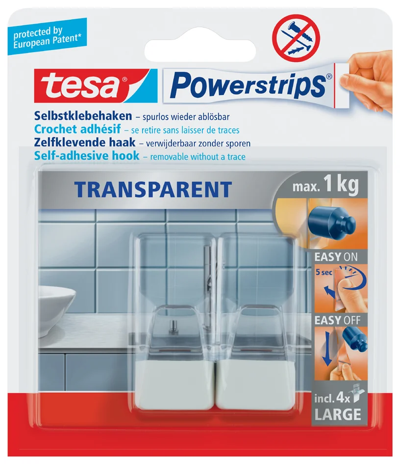 tesa Powerstrips Crochet adhésif LARGE, transparent / blanc