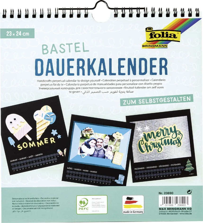 folia Calendrier mural créatif, A4, 170 g/m2, noir