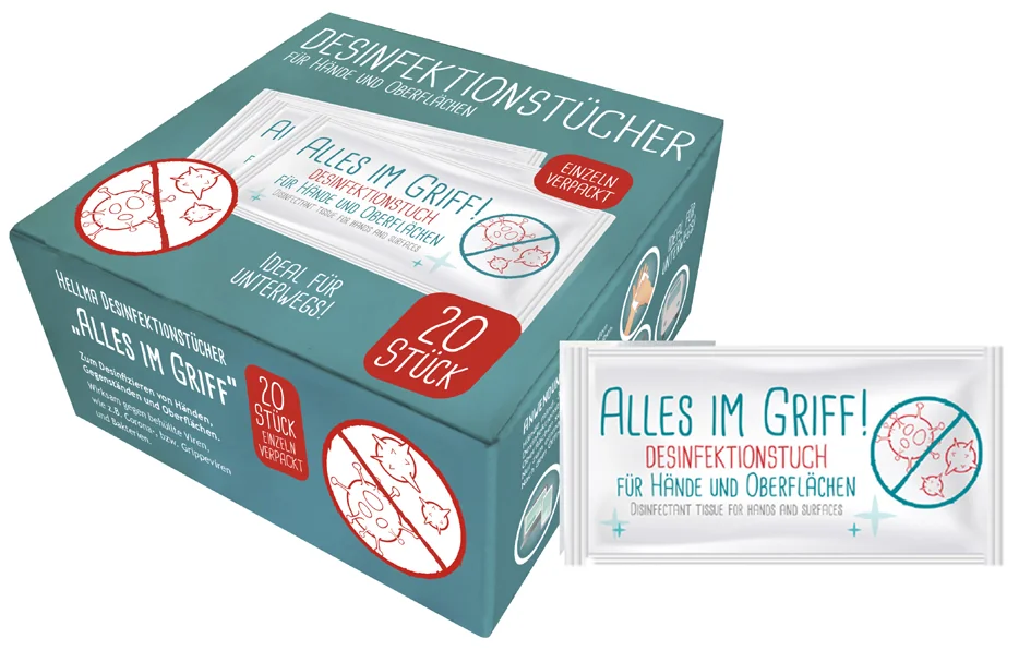 HELLMA Lingette désinfectante ‘Alles im Griff’, boîte de 20