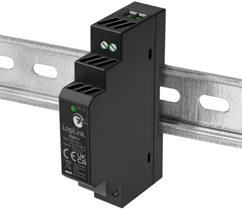 LogiLink Bloc d’alimentation pour rail DIN, 15 W, 12 V, noir