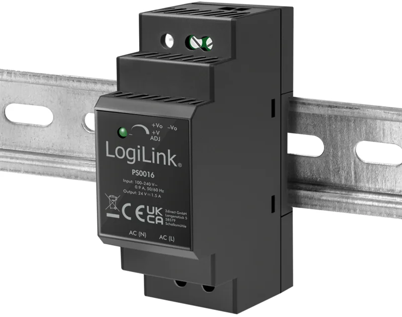 LogiLink Bloc d’alimentation pour rail DIN, 36 W, 24 V, noir