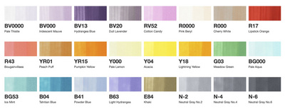marqueur layout à 2 pointes: pointe médium et pointe pinceau encre à base d’alcool, séchage rapide, couleurs miscibles entre elles, rechargeable avec les encres Various Ink, contenu : 24 marqueurs (21075525)