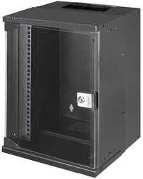 DIGITUS Wandgehäuse couleur: noir, livré non monté en flatpack, classe de protection: IP20, porte de sécurité en verre, verrouillable, en tôle d’acier, revêtu par poudre, rails profilés réglables en profondeur, dimensions: (L)315 x (P)300 x (H)460 mm
