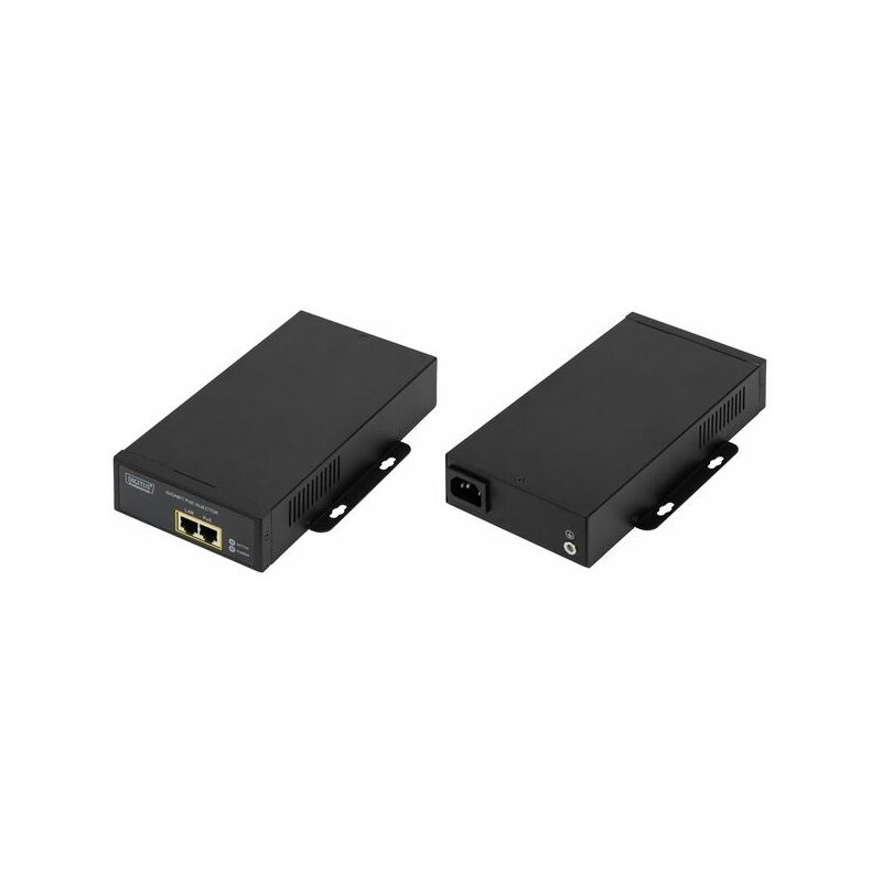 conforme à la norme PoE 802.3af/at, tension de sortie 55 V, 95 watts, entrée LAN RJ45, sortie LAN (RJ45), alimentation par broche ; 4/5(+), 7/8(-) et 3/6(+), 1/2(-), connexion par câble : 10/100/1000 Mbps, (L)134 x (P)214 x (H)41 mm (DN-95107)