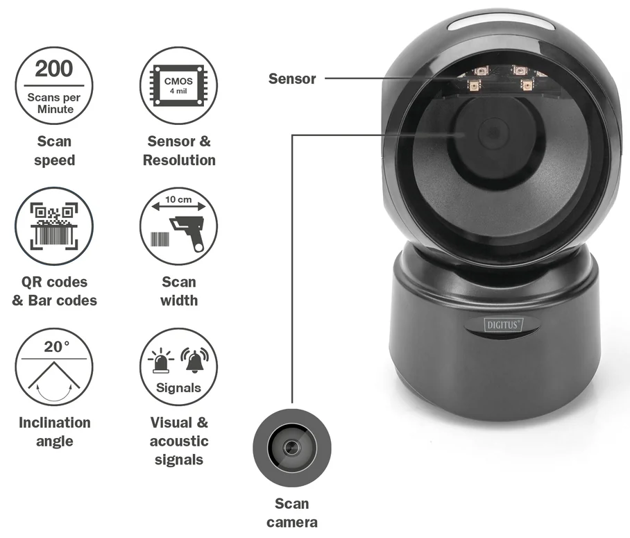 - avec 200 scans par seconde, ce lecteur omnidirectionnel donne les meilleurs résultats