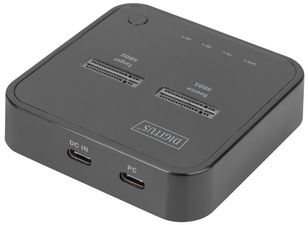 DIGITUS Dual M.2 NVM ligne, USB-C, station de clonage NVMe, boîtier avec baie M.2 pour SSD Nvme et USB 3.1 Gen2 type-C, gestion de 2 SSD M.2 NVMe via un port USB-C, 2 baies, max. 4 To par baie, mode clone et double mode, (L)79 x (P)77 x (H)18 mm,plastique