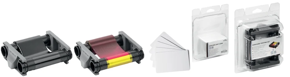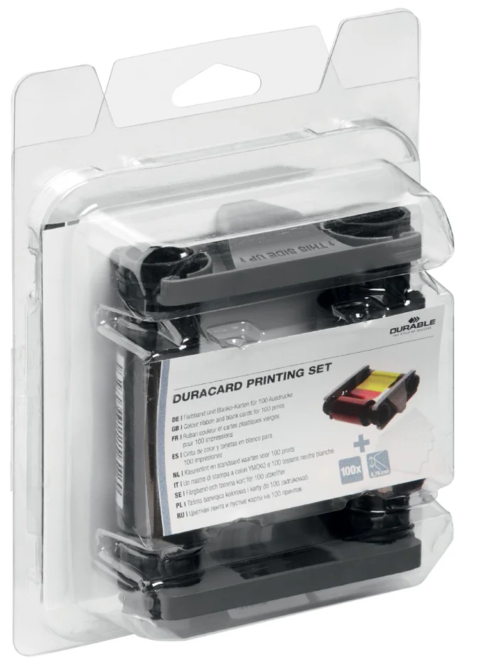 besteht aus YMCKO-Farbband und 100 Plastikkarten (8913-00)
