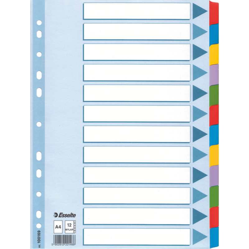 Intercalaires en carton uni, multicolore – onglets renforcés à l’aide d’un film