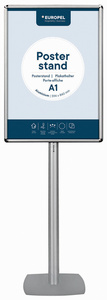 EUROPEL Infoständer hauteur: 1.800 mm, cadre en aluminium anodisé, cadre à clipser à angles arrondis, système Easy-Click et film anti- relets, pied en aluminium, dimensions du socle: 400 x 400 mm couleur: gris