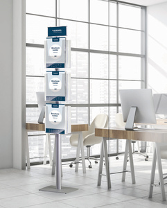 avec profilé aluminium et socle robuste en acier, 6 porte- brochures en acrylate, convient au format A4, se fixe au pied comme souhaité, avec support pour logo des deux côtés, hauteur du pied: 1.493 mm (350501)