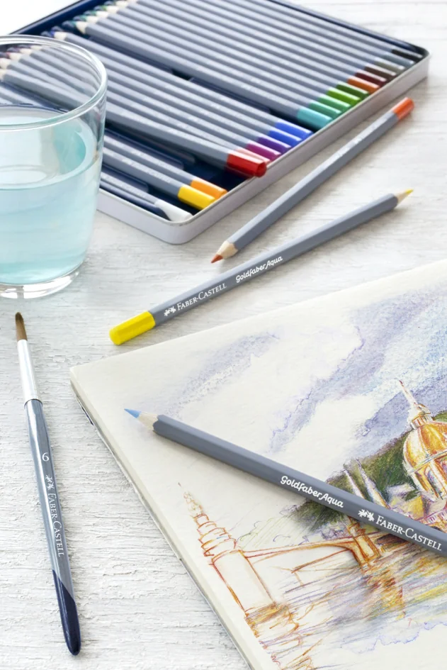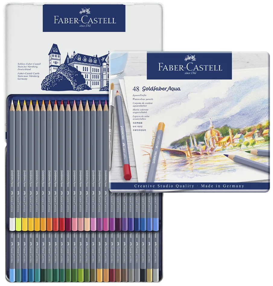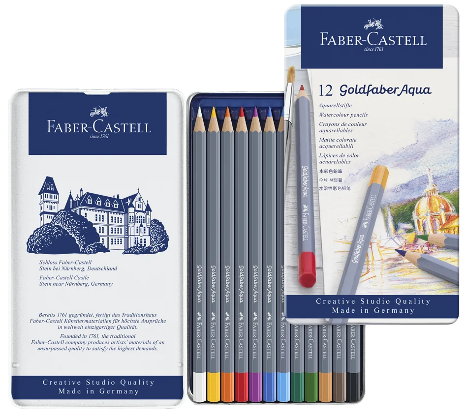 - Crayons de couleur aquarellables GOLDFABER, étui en métal