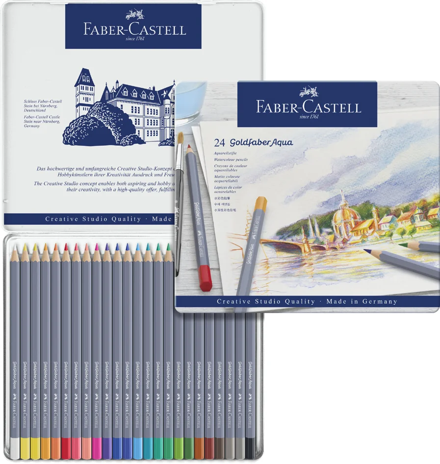 • Crayons de couleur aquarellables GOLDFABER, étui en métal
