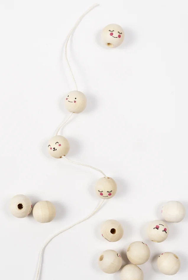 - perles en bois avec des visages amusants – 3 motifs assortis