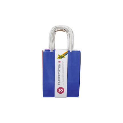 folia Sac en papier kraft BASIC, 120 x 55 x 150 mm, assorti sac cadeau à peindre et décorer format S, papier kraft 110g/ m2, avec anses torsadées, assorti dans les couleurs : bleu, rose, jaune, vert, rouge contenu : 20 pièces (21209)
