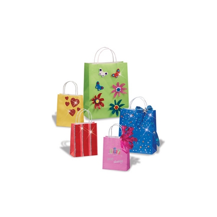 sac cadeau à peindre et décorer format S, papier kraft 110g/ m2, avec anses torsadées, assorti dans les couleurs : bleu, rose, jaune, vert, rouge contenu : 20 pièces (21209)
