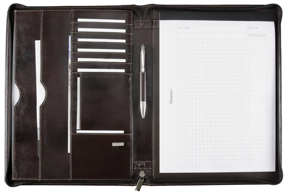 Alassio Conférencier ‘MONACO’, A4, cuir, marron sombre