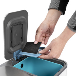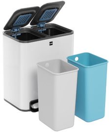 hel Abfallt twinbin blanc, en inox & ABS, 2 poubelles avec filtre à charbon actif interchangeable dans le couvercle (incl.), mécanisme Soft-Close, bac intérieur amovible, avec pédale, dimensions: (L)400 x (P)330 x (H)456 mm