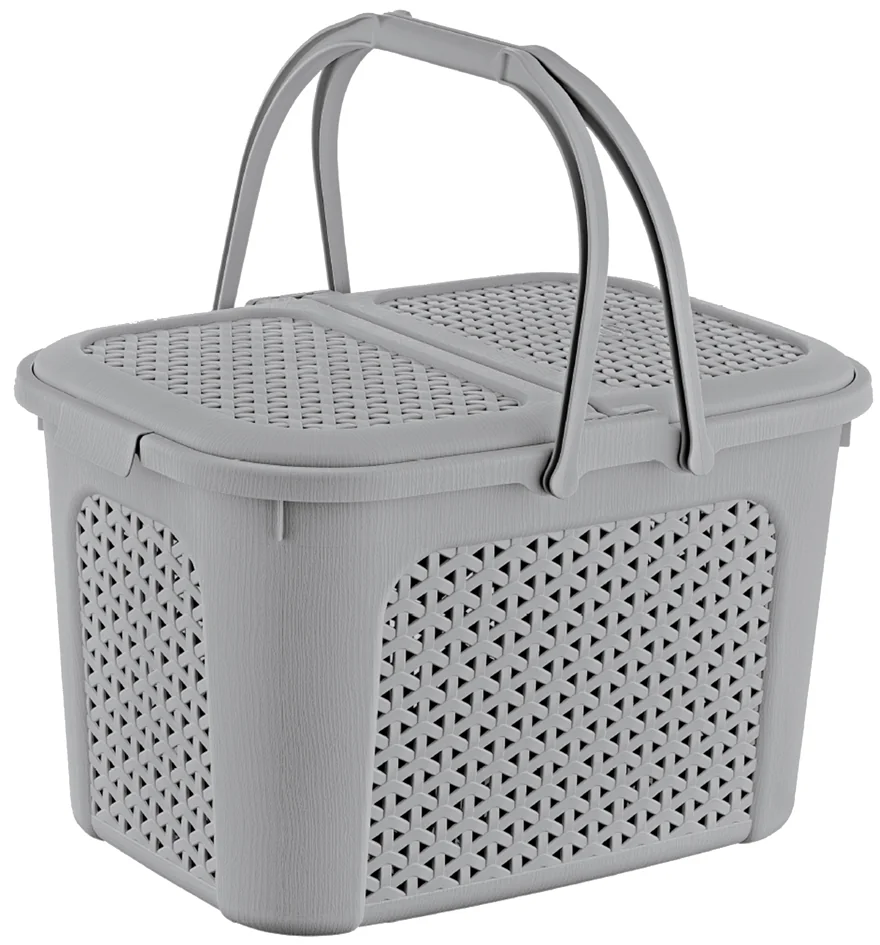 panier de courses avec couvercle, aspect rotin, 2 poignées, couvercle s’ouvrant sur les deux côtés, matériau: PP, dimensions: (L)460 x (P)350 x (H)285 mm (1065913000000)