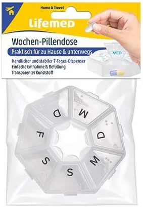 Lifemed Wochen-Pillendose, Kunststoff, transparent / blau