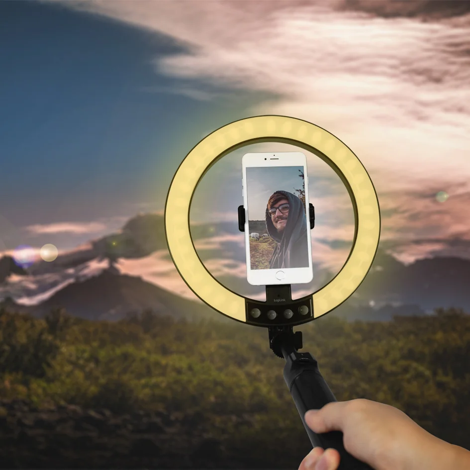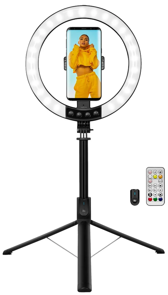 - Anneau lumineux pour smartphone, avec trépied/perche à selfie