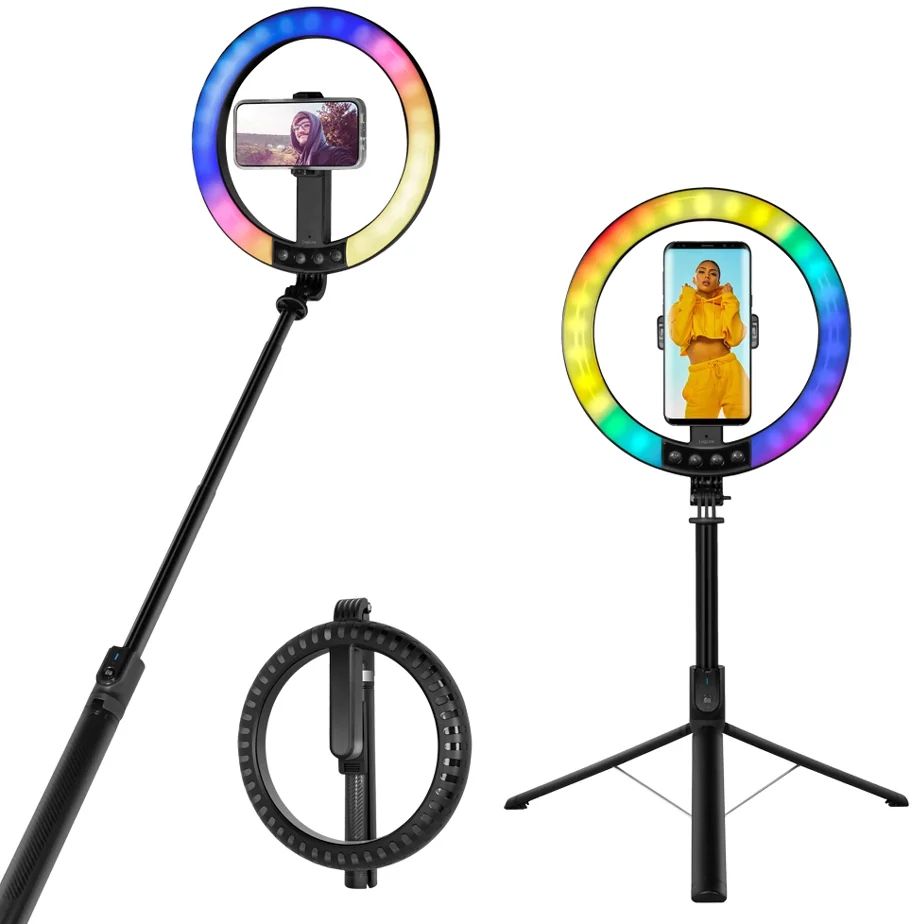 - lampe annulaire LED pliable avec trépied/perche extensible pour selfie