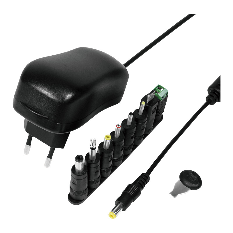 pour l’alimentation de nombreux appareils électriques, avec protection contre surintensité, surtension, surchauffe & court-circuit, entrée: AC 100-240V, 50/60 Hz, 0,6A max, sortie: 3V/4,5V/5V/6V/7,5V/9V/12V, 1A, 7 adaptateurs, noir (PA0167)