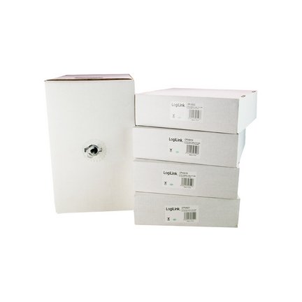 LogiLink Câble d’installation, Cat.5e, SF/UTP, 305 m, gris 4 x 2 AWG 24/1, blindé par film et tressé par paire, la livraison se fait dans une boîte en carton avec un système Easy Pull pour un sectionnement facile, classe de feux européenne: E (CPV009)