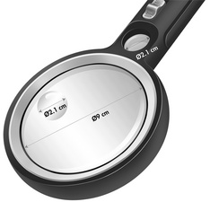 diamètre: 90 mm, lentille en verre, grossissement: 5 fois, 13 fois & 20 fois via 2 lentilles supplémentaires d’un diamètre de 21 mm, avec 30 LED, avec 3x piles AAA, dimensions: (L)108 x (P)25 x (H)230 mm (WZ0075)