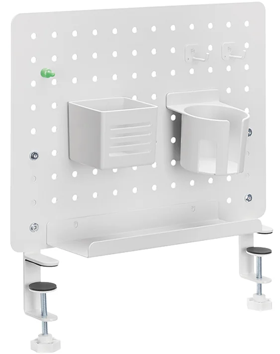 - Organiseur de bureau avec panneau perforé, montage par pinces – capacité de charge de 5 kg