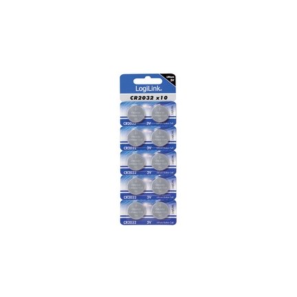 LogiLink Pile bouton lithium “Ultra Power”, CR2032, blister de 10, 3 Volt, hauteur: 3,2 mm, diamètre: 20 mm, capacité: 210 mAh, contenu: 10 piles bouton (CR2032B10)
