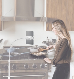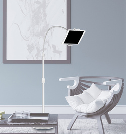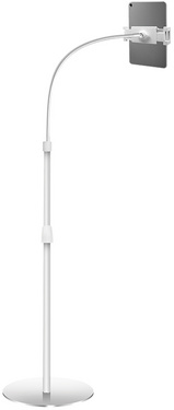 argenté, convient aux smartphones ou tablettes de 4,7″ (11,94 cm) à 12,9″ (32,77 cm), réglable en hauteur de 680 à 1.730 mm, en aluminium & métal, support orientable à 360 degrés, diamètre du socle: 300 mm (AA0082A)