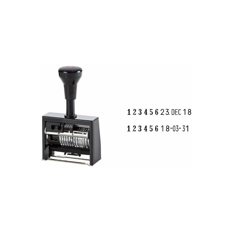 taille des chiffres: 4,5 mm, changement automatique des empreintes de chiffres: 5 positions à partir de la droite, 6 chiffres avec ou sans 0 devant, police: Antiqua (chiffres) et Block (date), boîtier noir en plastique, (00000201000-050)