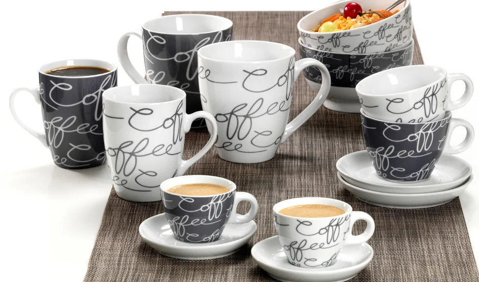 0,6 l, en porcelaine, lavable au lave-vaisselle, avec motif, assorti dans les couleurs: blanc, gris hauteur: 110 mm en paquet de 6 pièces (557732)