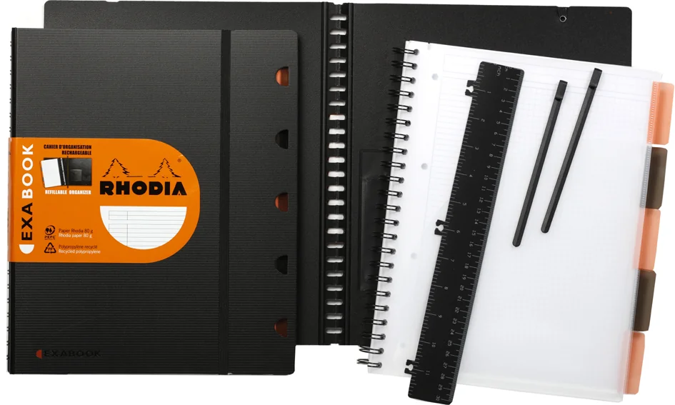 RHODIA Cahier recharge pour EXABOOK, A4+, quadrillé 5×5,noir