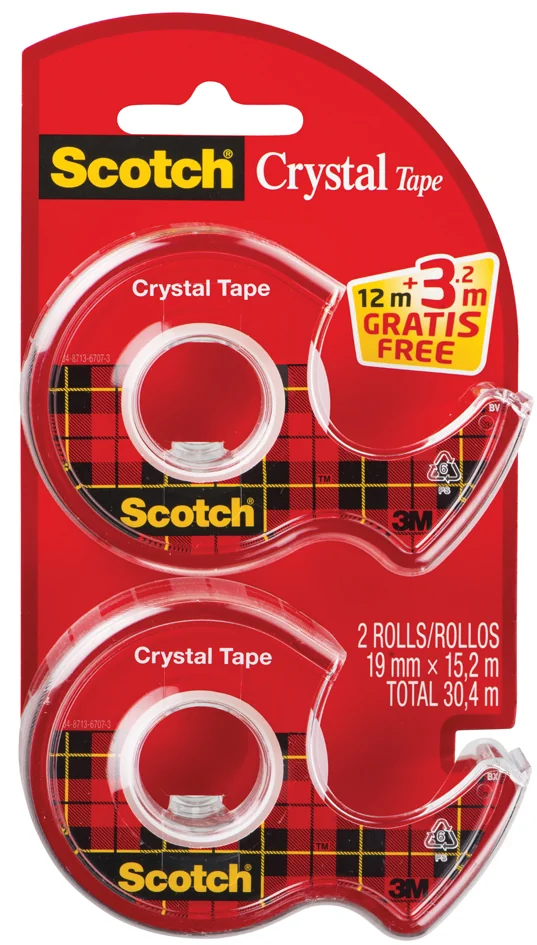 ruban adhésif avec chacun 19 mm x 12 m + 3,2 m gratuit contenu: 2 x dévidoir à main jetable + 2x Scotch Crystal (6-1915DP / 70005197994)