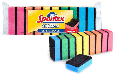 Spontex Colors x10 S éponge à récurer en PU de couleur, avec grattoir en non-tissé noir, nettoie efficacement et en profondeur, assorti en 5 couleurs (97570022)