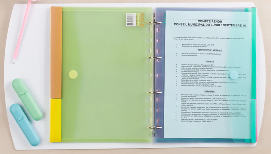 - pour ranger des documents non perforés comme des offres, chèques…