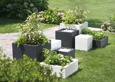 en plastique, design moderne, revêtement à effet minéral, double paroi, pour l’intérieur et l’extérieur, résistant aux UV, très léger, capacité: 55,0 litres, dimensions: (L)500 x (P)500 x (H)500 mm (11425050043)