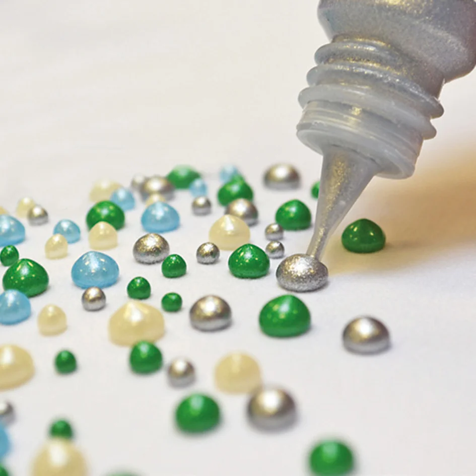 - la couleur s’applique directement du stylo sur le support et forme en se rétractant une demi-perle