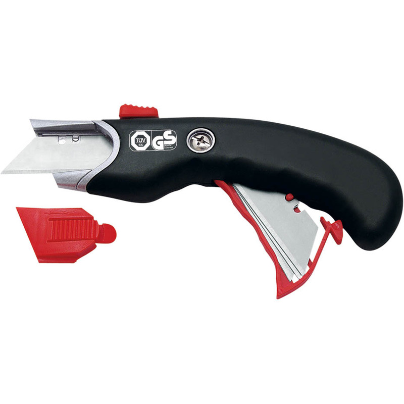 • retrait automatique de la lame: les lames sont équipées de ressorts et disparaissent automatiquement lorsque la lame glisse de l’objet (ne pas toucher le manche pendant la coupe)